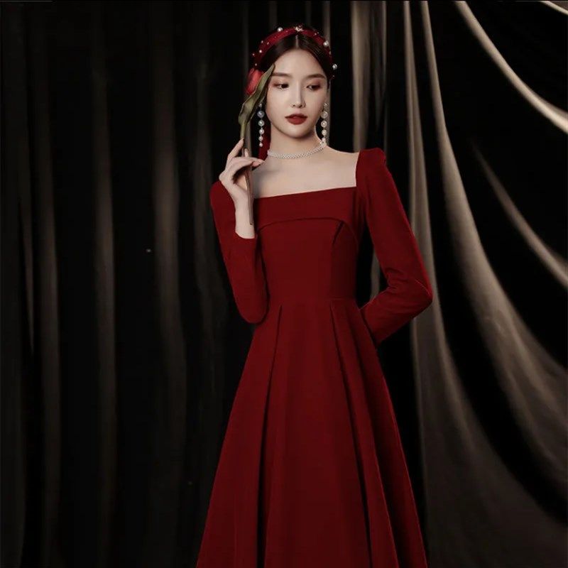 敬酒服新娘冬季 冬天 酒红色结婚小礼服连衣裙订婚女高级感丝绒长袖