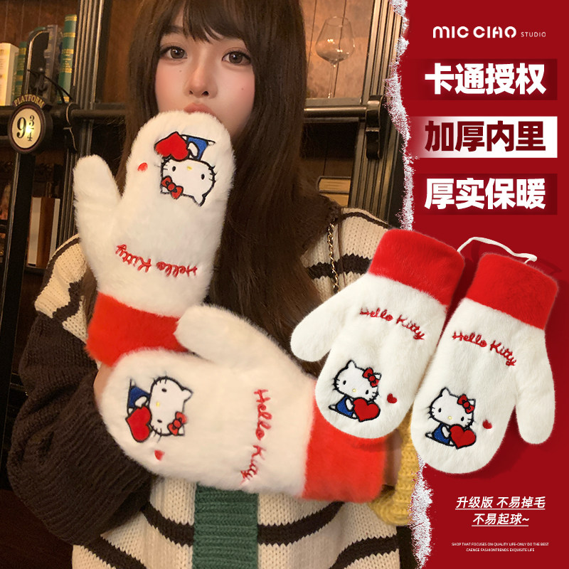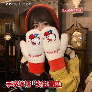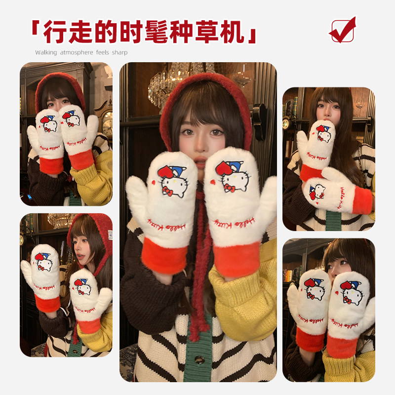 韩系可爱毛绒手套女2025新款 加厚保暖防寒露指可触屏手套学生 冬季