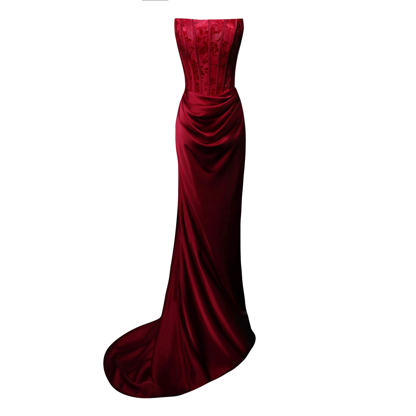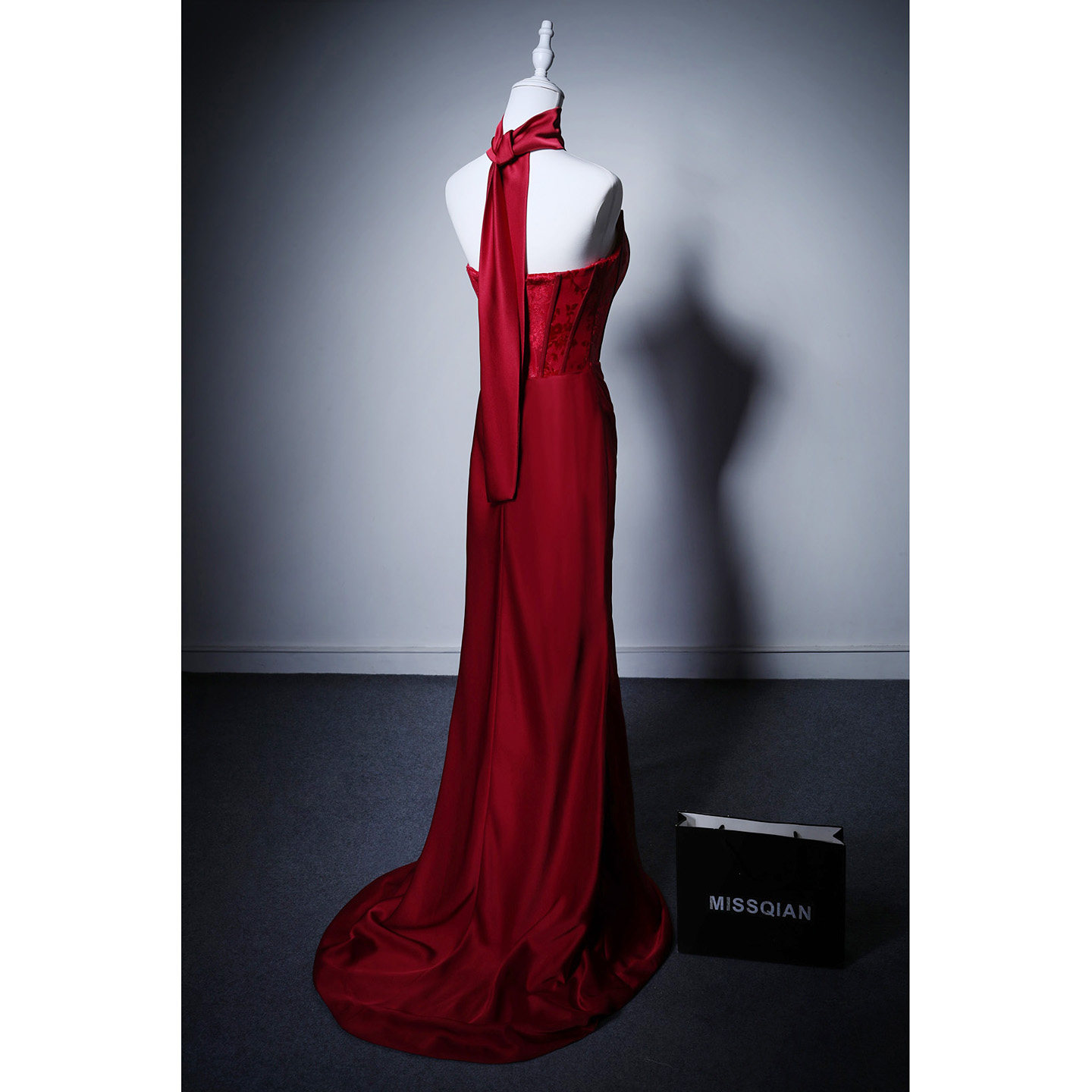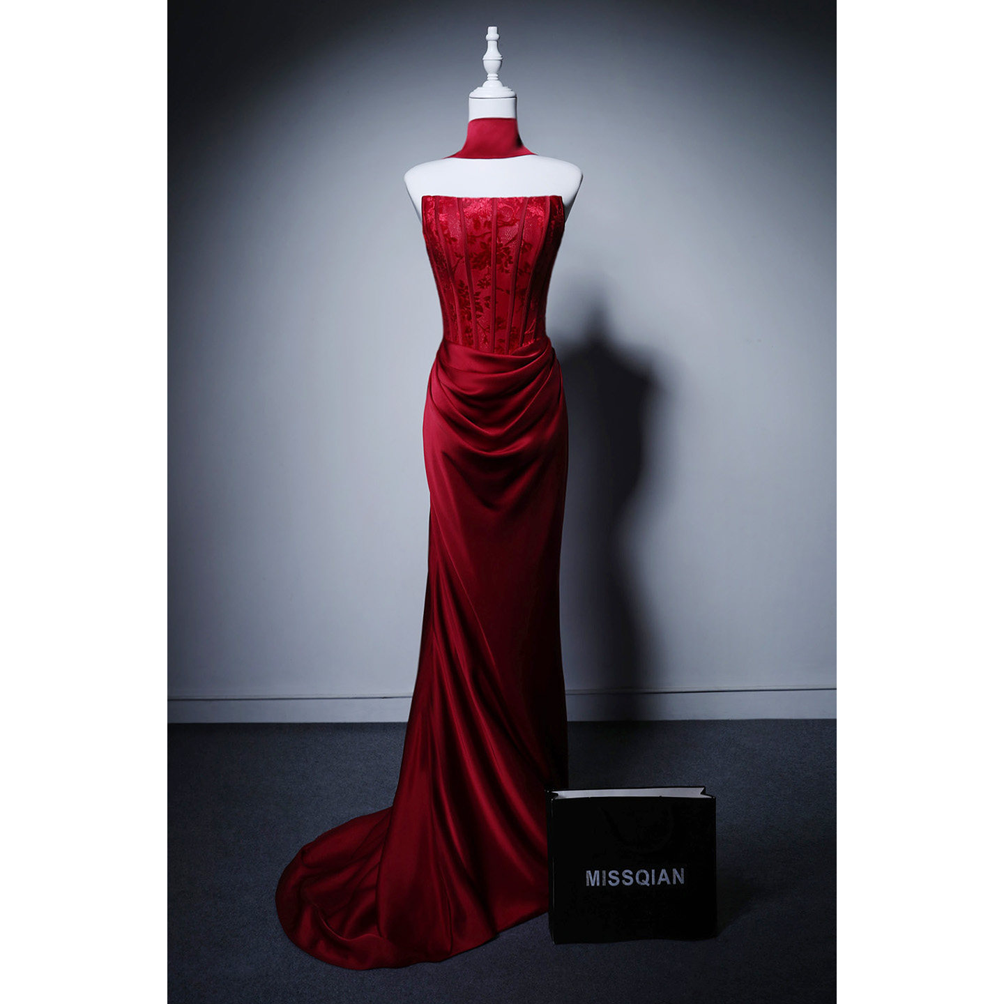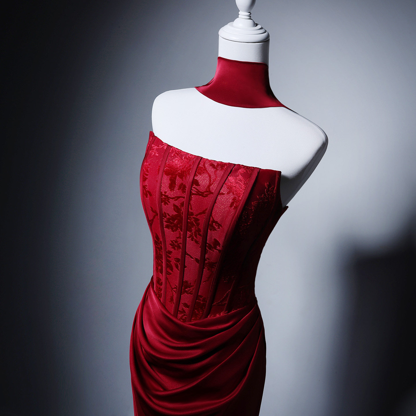 时尚 高级感礼服 晚宴风抹胸鱼尾气质新娘敬酒服红色订婚礼服修身