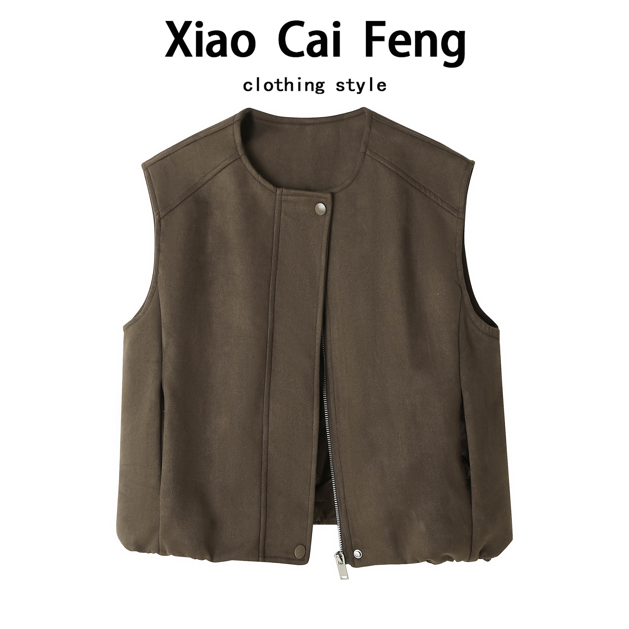 美式 马甲外套女春秋高级感宽松百搭叠穿坎肩背心潮 复古麂皮绒工装