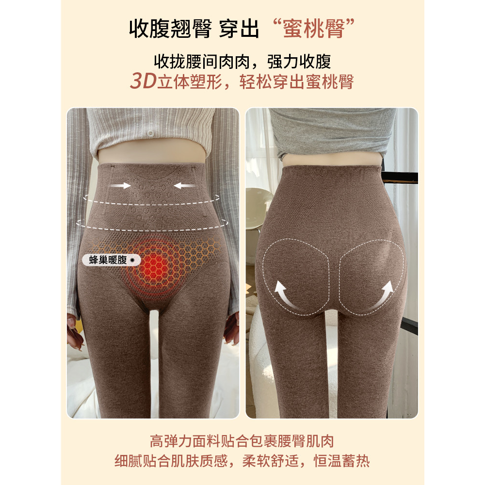 袜 高腰收腹一体踩脚压力连裤 灰色打底裤 女外穿秋冬加绒保暖棉秋裤