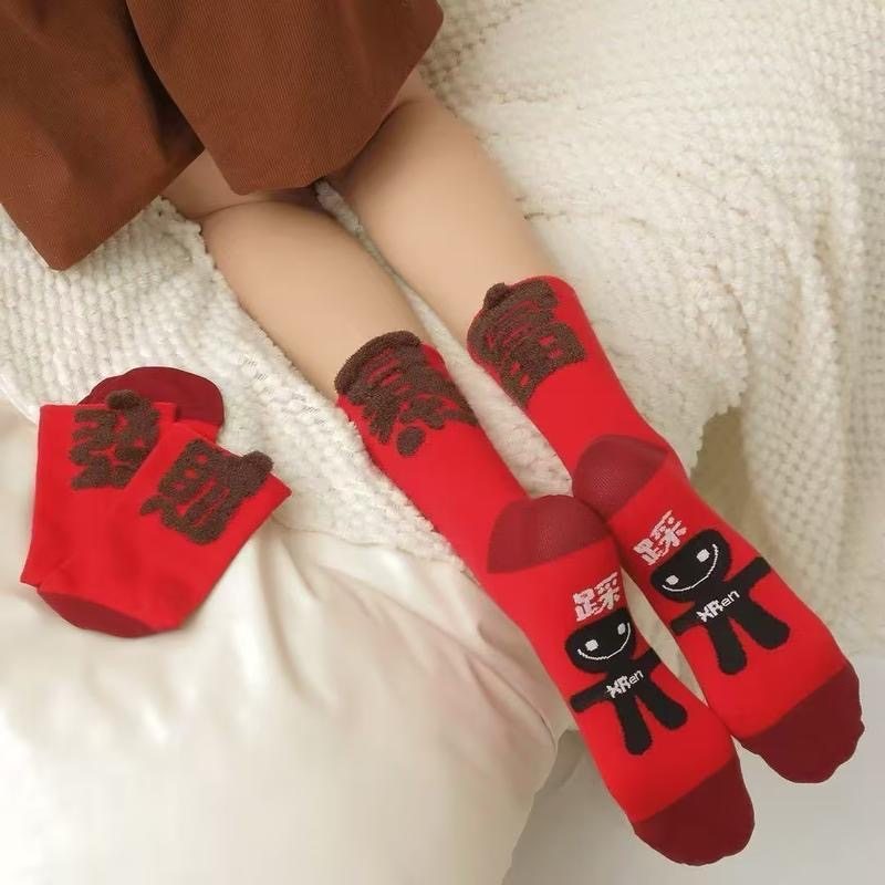 新年2026红色袜子红袜子冬天情侣ins本命年喜庆男女暴富发财暴富
