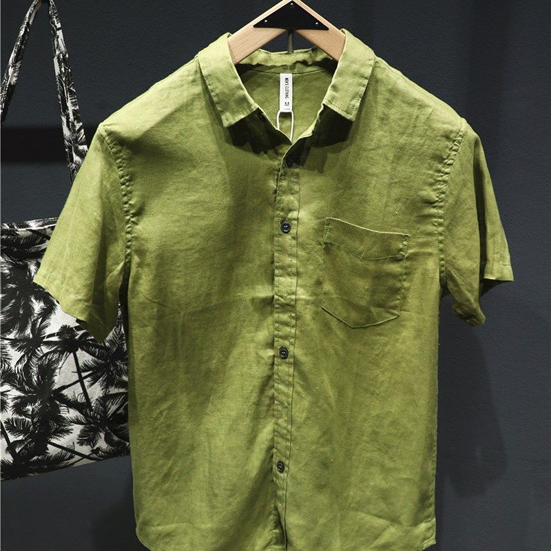 苎麻灰色衬衣2024夏季 薄款 短袖 男式 五分袖 衬衫 冰丝开衫 纯亚麻半袖