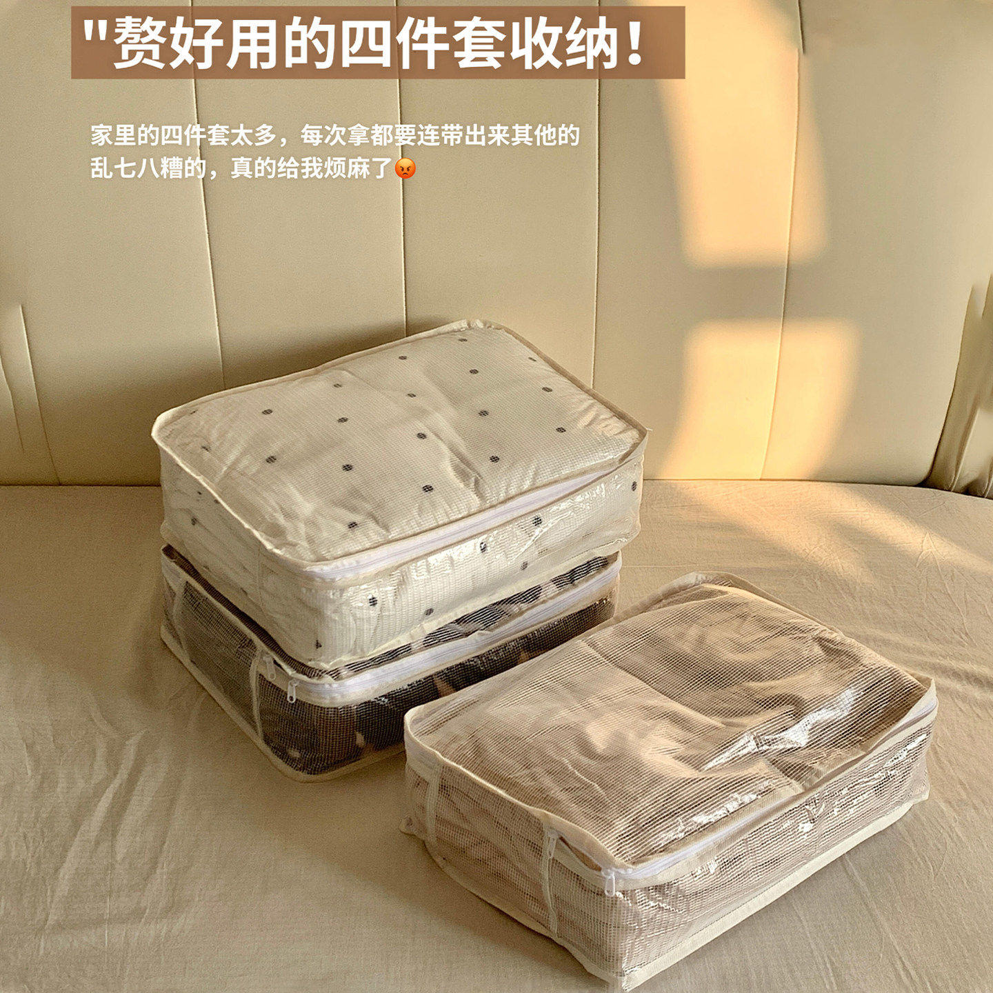 网纱四件套专用收纳袋家用卧室大容量防尘防潮衣柜棉被分格整理盒