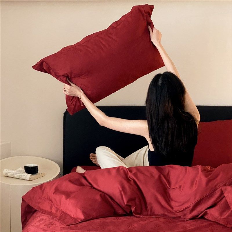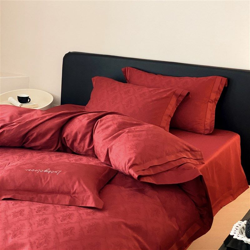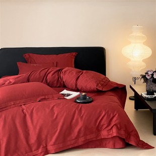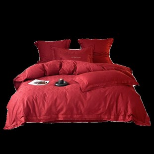 高级感婚庆复古提花100纯棉四件套红色全棉结婚被套床单床上用品