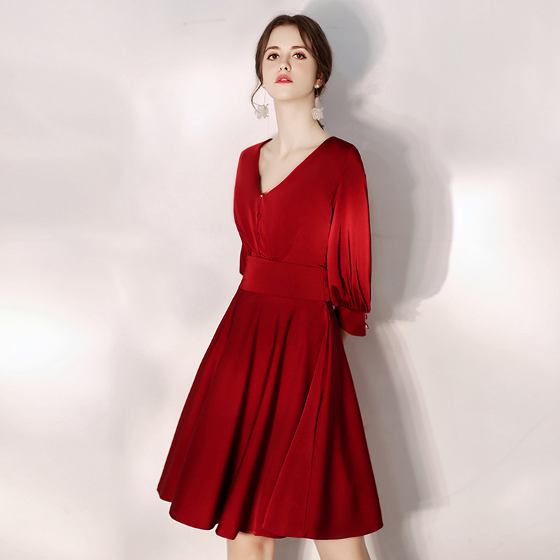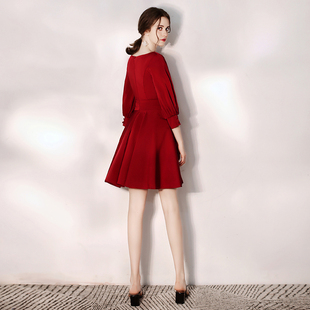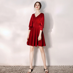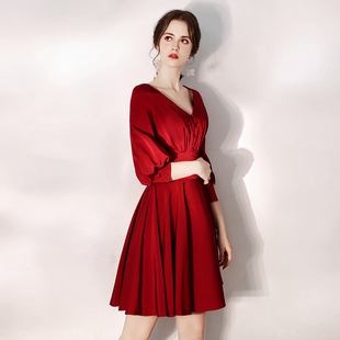 酒红色敬酒服新娘2020结婚衣服女洋装 小个子订婚裙平时可穿晚礼服