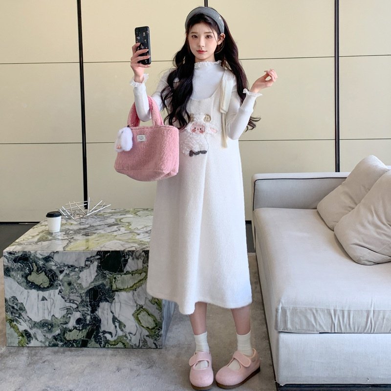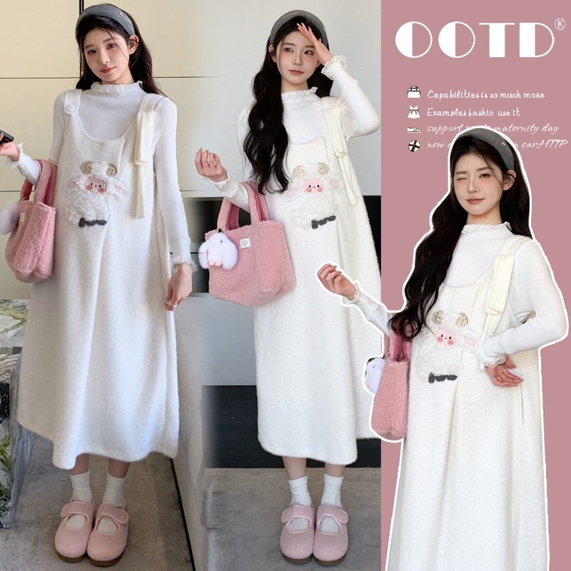 两件套装 安妮不火 微胖大码 女2025秋冬新款 甜酷风呢子连衣裙套装