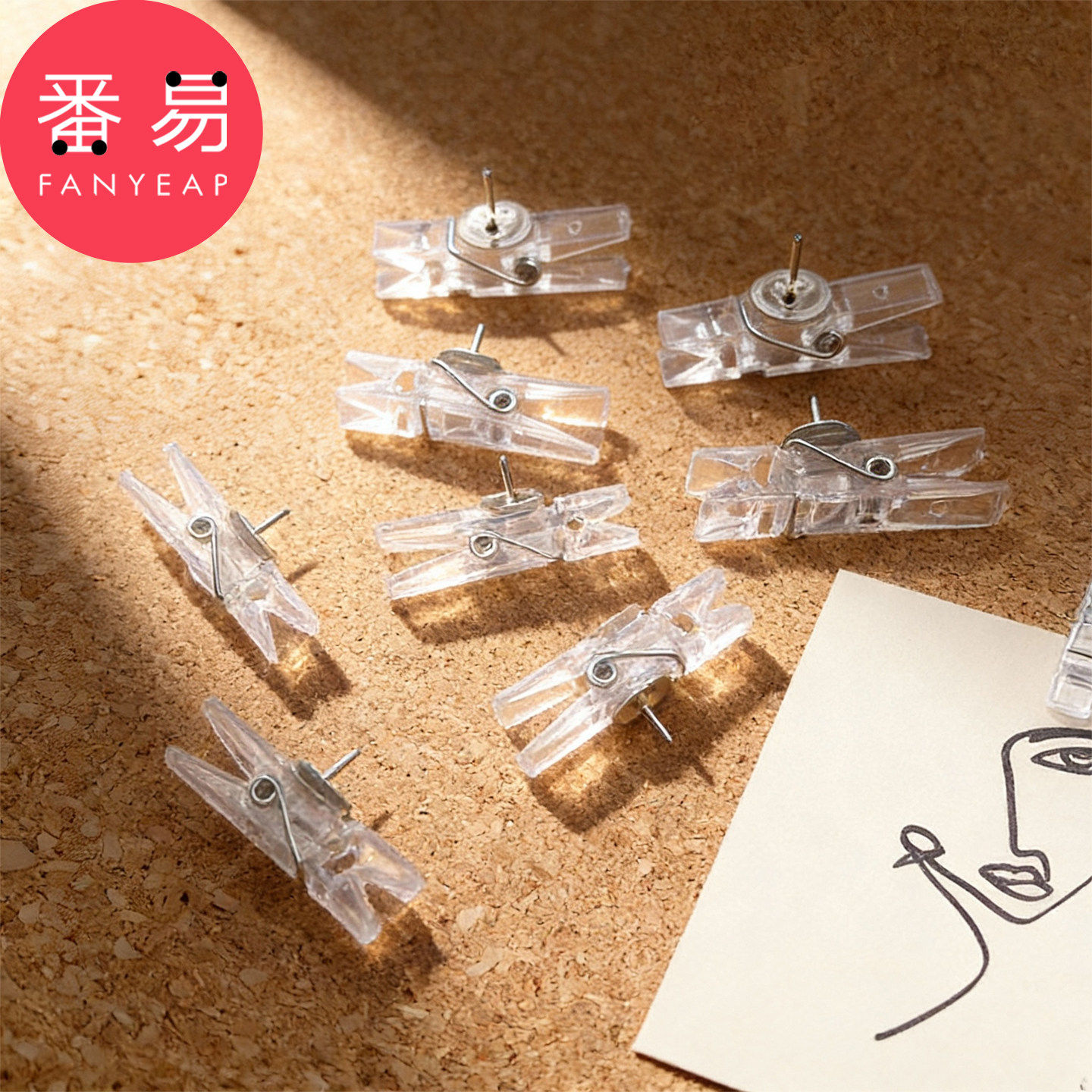 100个透明图钉夹子工字钉学生用幼儿园按钉软木板固定照片展示墙毛毡板相片夹照片夹挂墙夹子钉小木夹A1