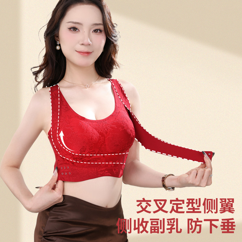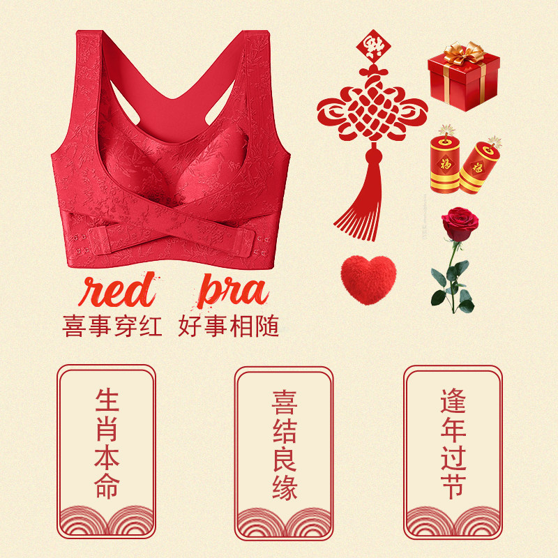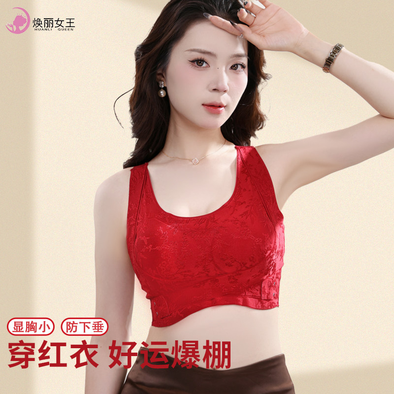 焕丽女王妈妈红色内衣本命年女士大红色前扣防下垂新蛇年文胸罩