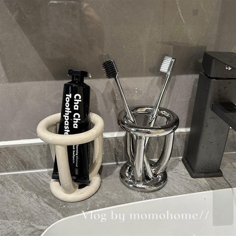 MOMO HOME家居陶瓷卫生间创意牙刷置物架子一家三口牙具牙膏收纳