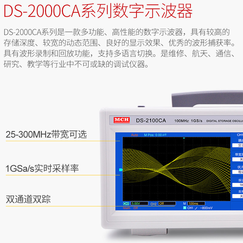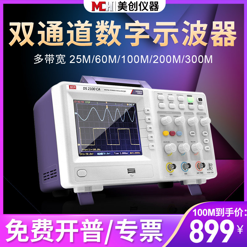 新款 数字示波器25M60M100M200M双通道双综大屏幕存储示波器 美创