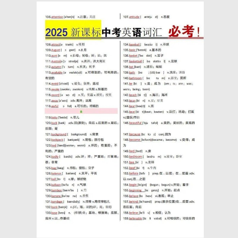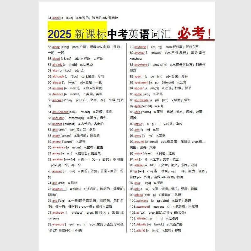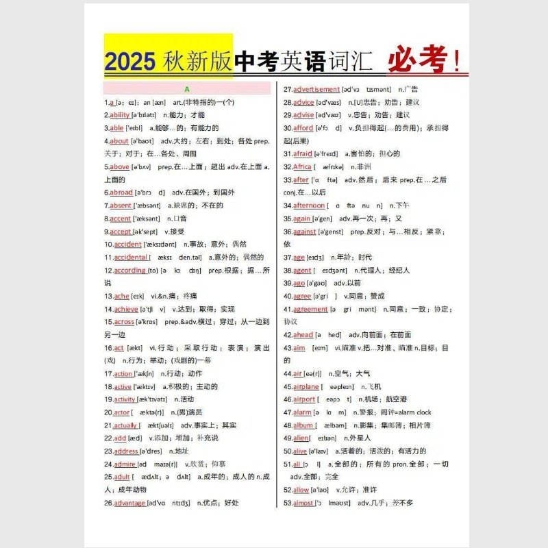 25新版 初中英语中考必考词汇2000词新课标必背词汇积累PDF电子档