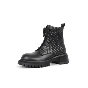 短靴皮靴冬新款 天美意复古英伦厚底加绒马丁靴女鞋 子休闲时装