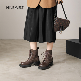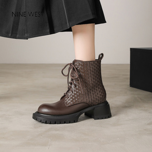 星期六秋冬女靴英伦马丁靴女靴圆头时尚 靴 中跟短筒短靴子复古时装