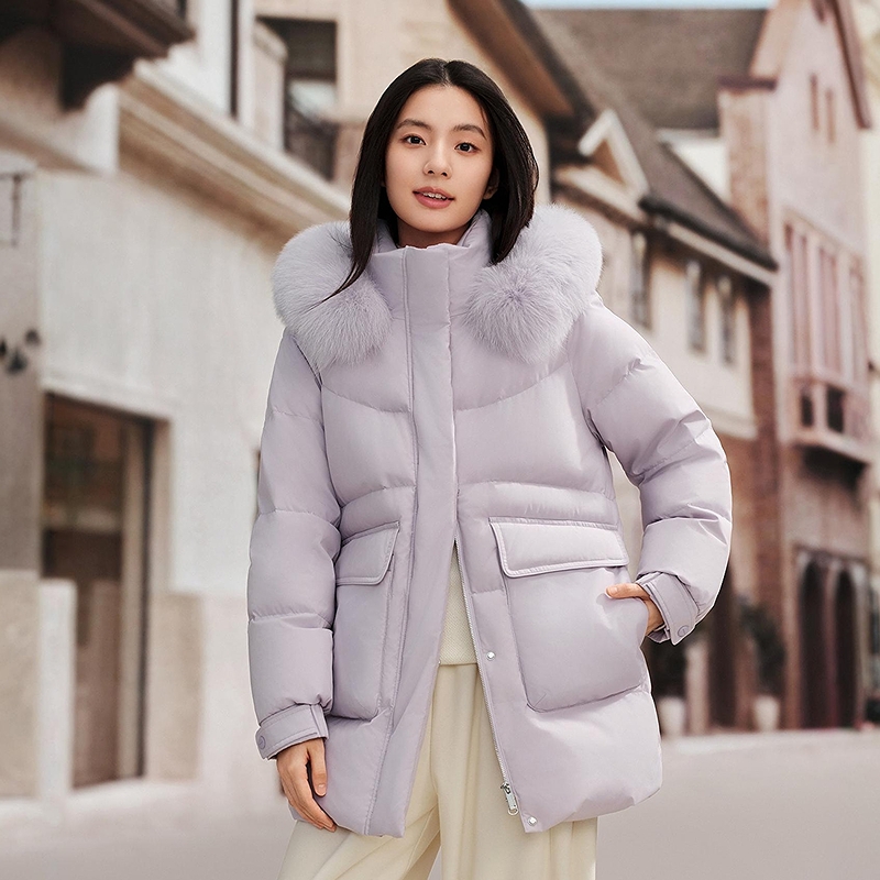 连帽羽绒服 女士长款 保暖外套 女款 厚实 秋冬装 90白鸭绒