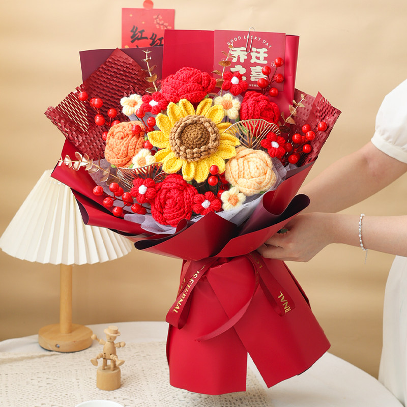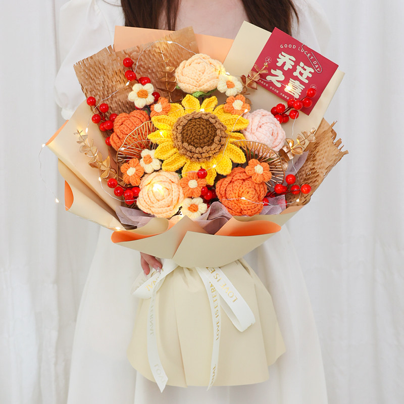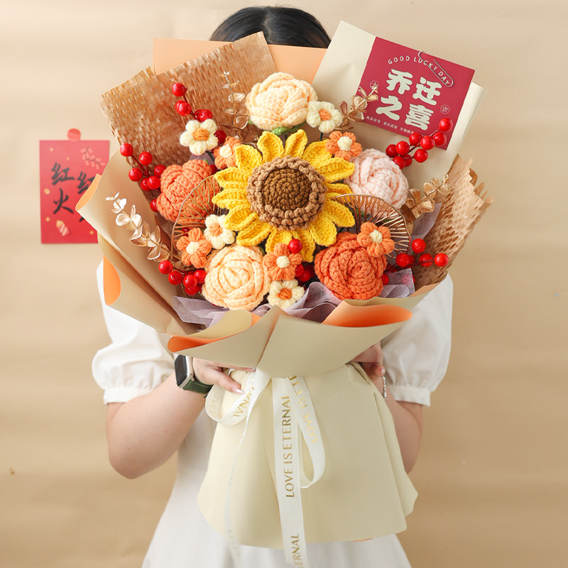 乔迁礼物成品针织向日葵年宵花送朋友亲戚搬家新居仪式 感礼品花束