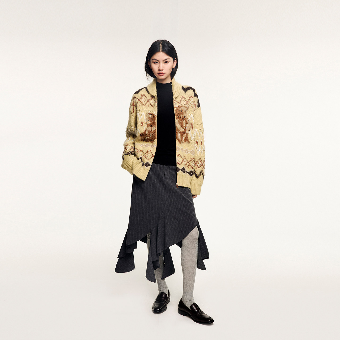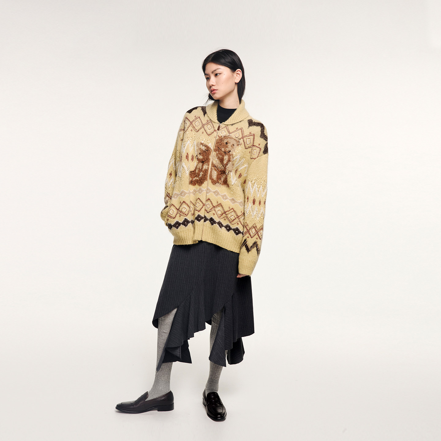 「伤心小熊」费尔岛雪橇领毛开衫 新款 乌丫2025冬季 UOOYAA