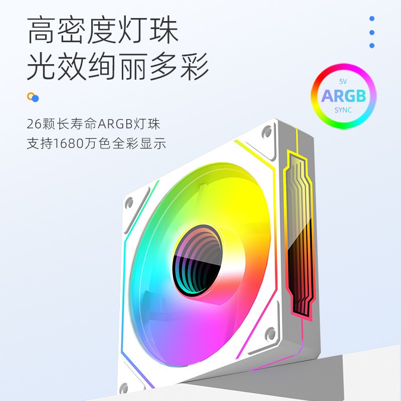 棱镜4代pro散热风扇12cm电脑PWM温控5v3针argb白色正反向机箱风扇