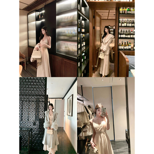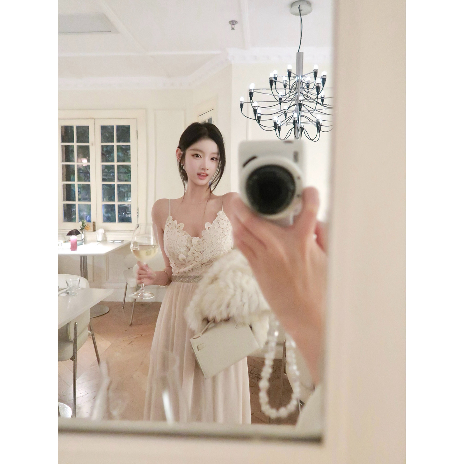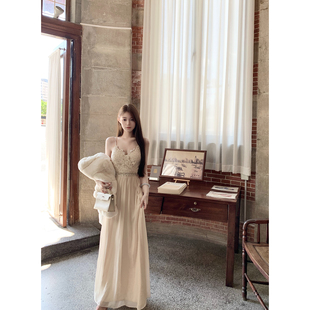 古早钉珠长裙 琥珀琉光 女人味蕾丝吊带连衣裙 热狗很辣 Hotdog