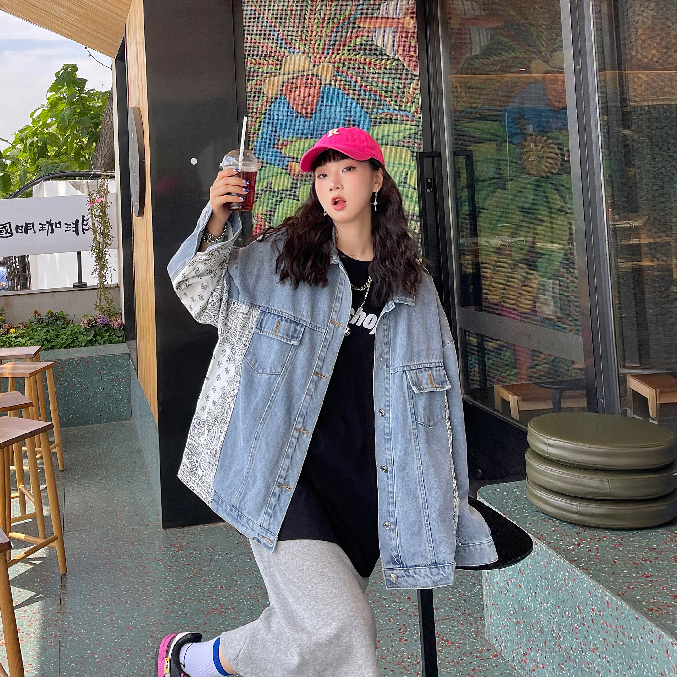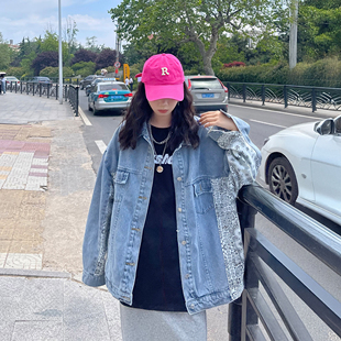 腰果花复古拼接牛仔外套女设计感小众春季 宽松春秋夹克潮ins 韩版