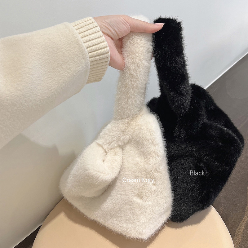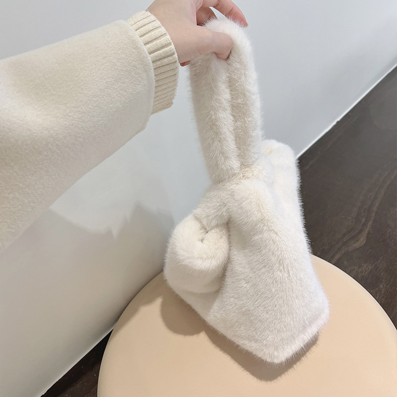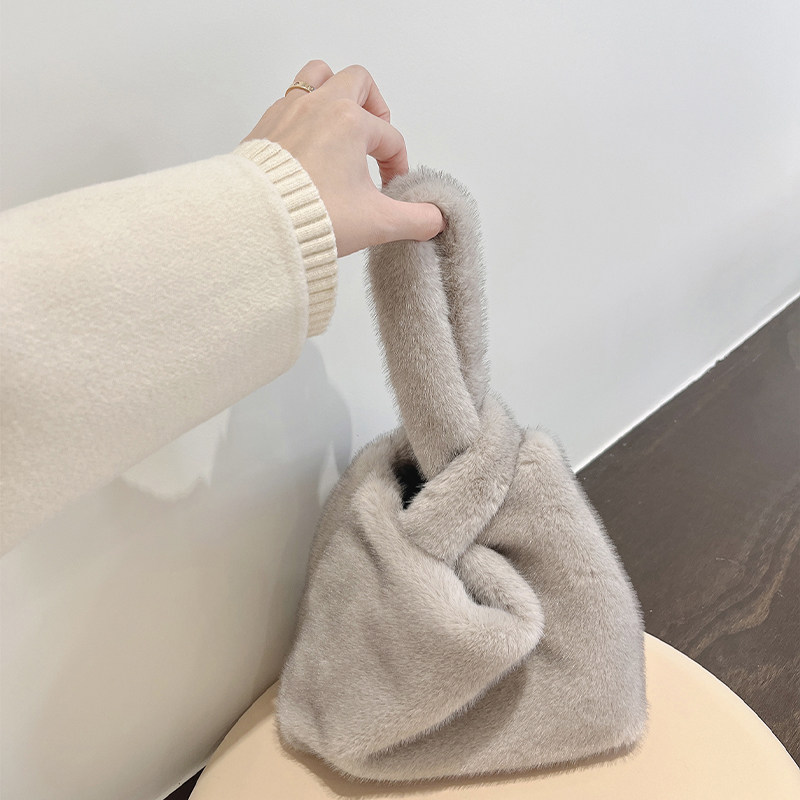 仿水貂毛新百搭通勤毛绒包女高级感小众设计便当手提袋手拎手腕包