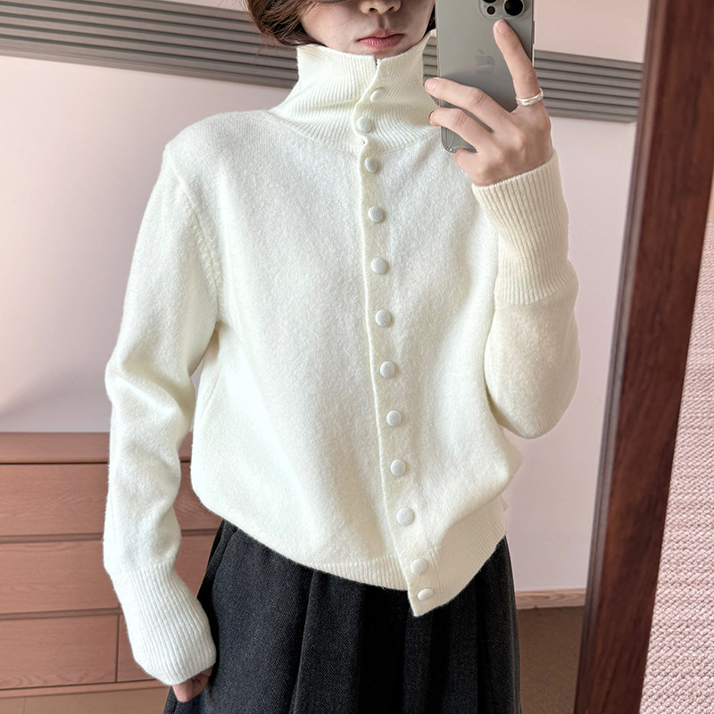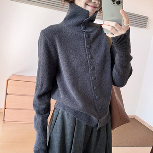 休闲显瘦上衣小衫 话里甜美气质基础款 韩版 新款 单排扣毛衣2025秋季