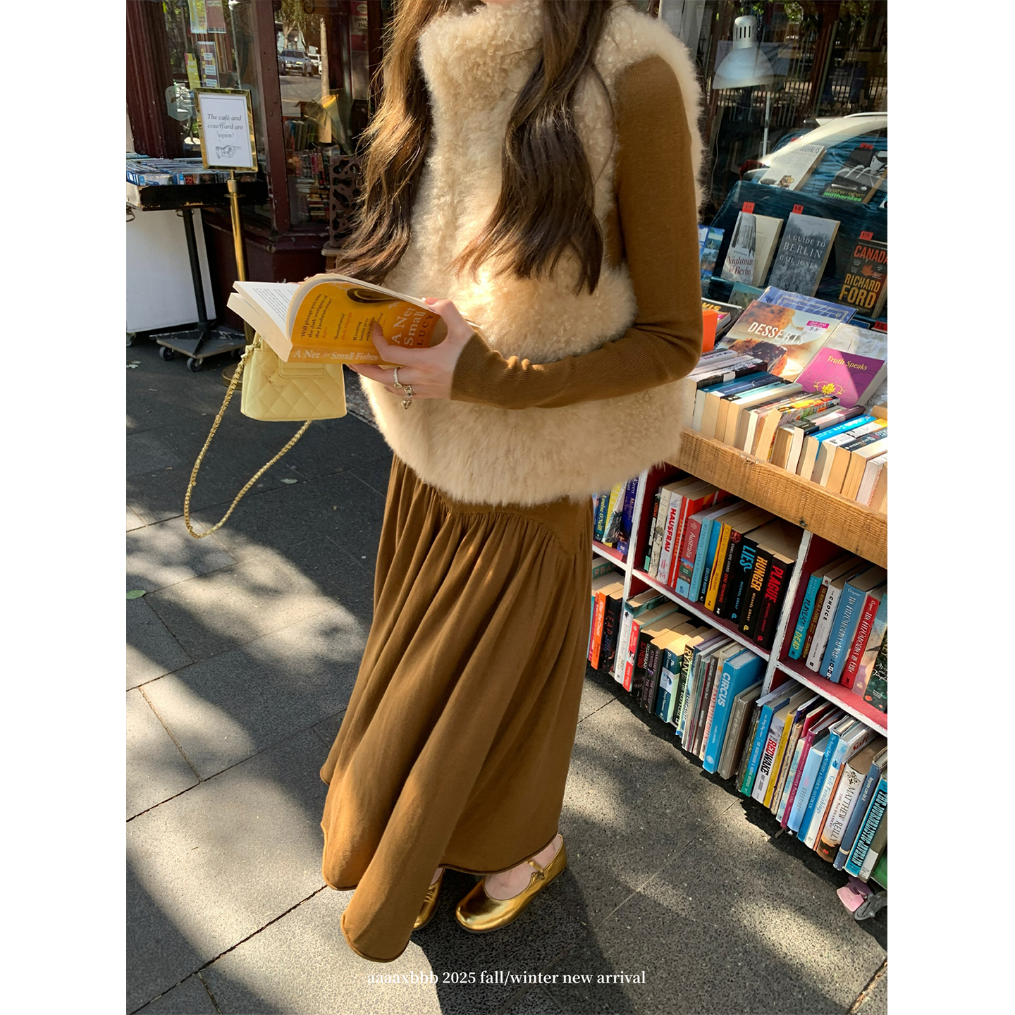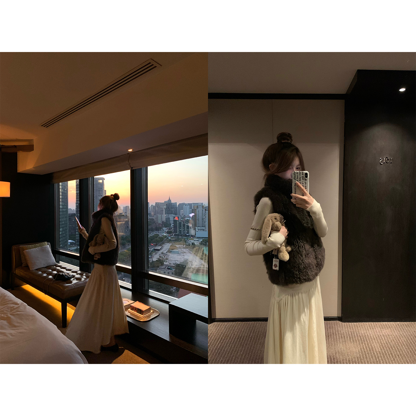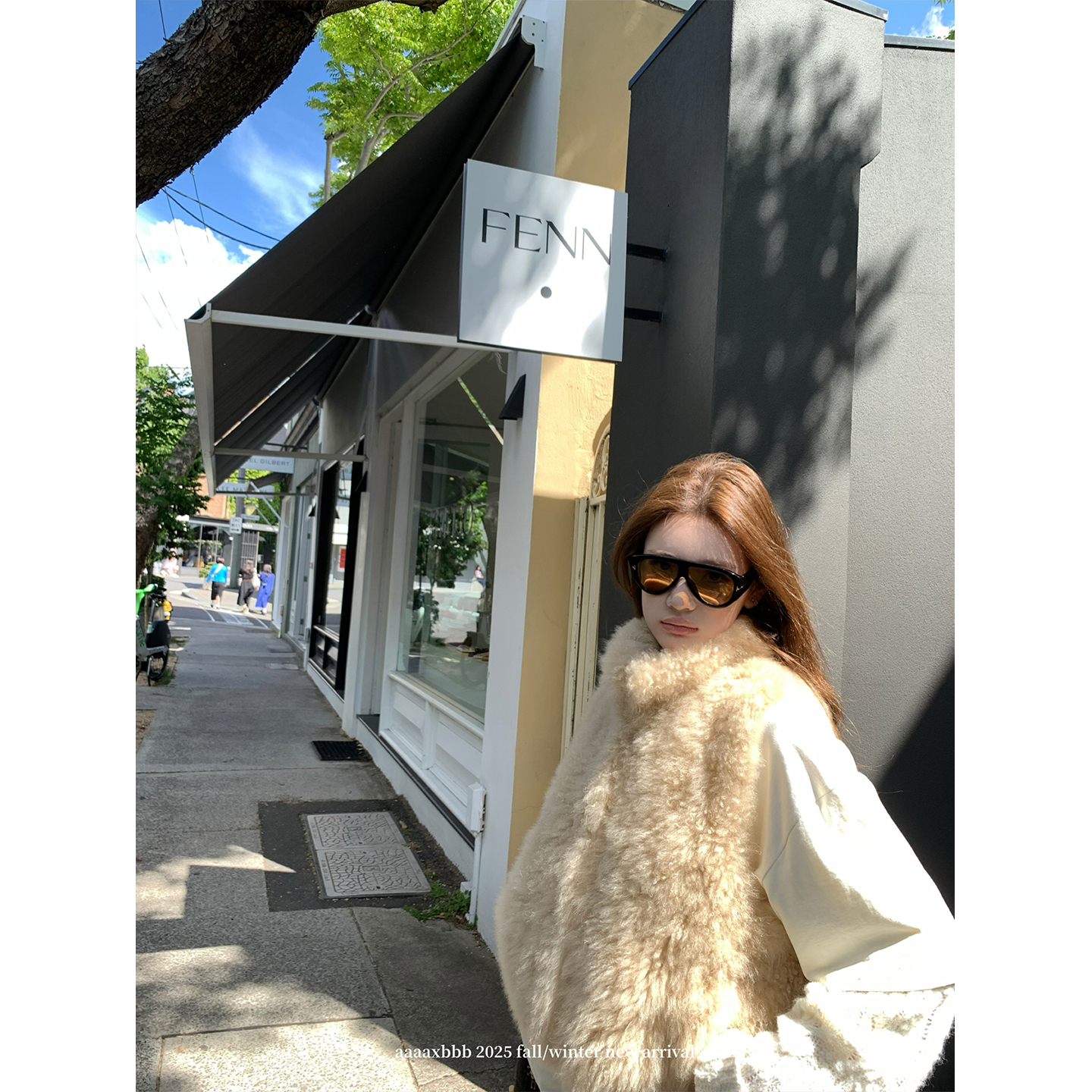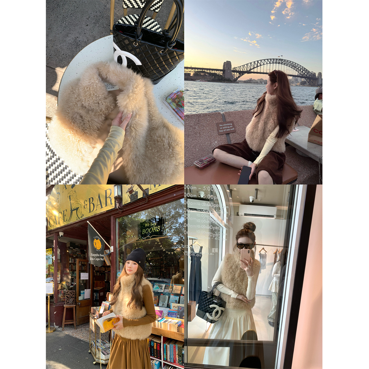 无袖 两色稀奢真皮草马甲羊皮立领短款 上衣女 旧金山暖潮 aaaaxbbb