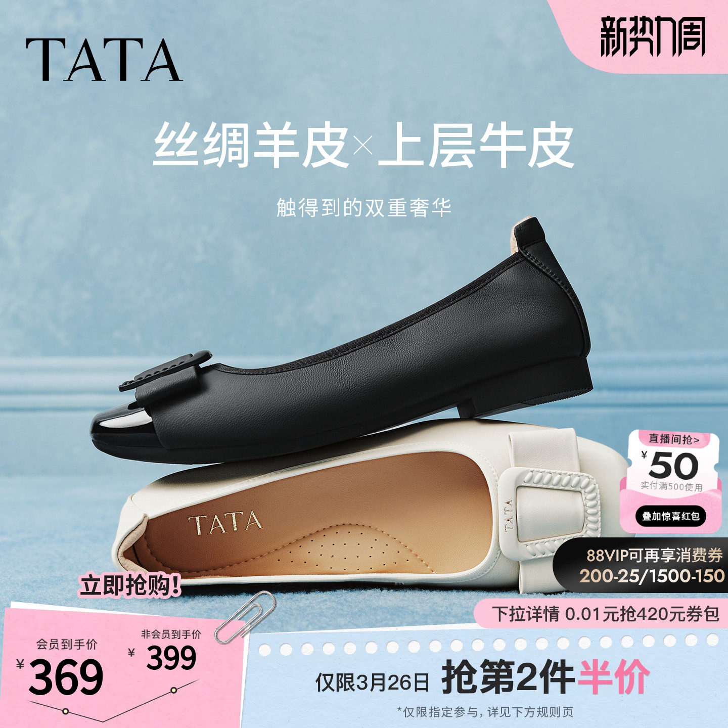 2026春季 低平跟单鞋 新款 百搭羊皮浅口鞋 UUD02AQ6 时尚 TATA他她女鞋