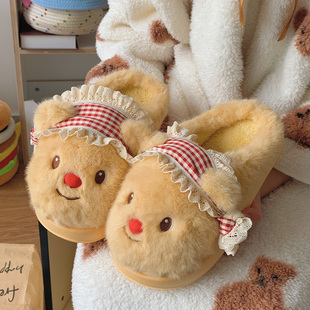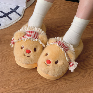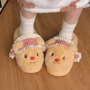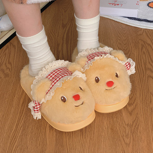 假日 外穿防滑厚底居家室内保暖棉鞋 网红可爱黄油小熊棉拖鞋 女冬季
