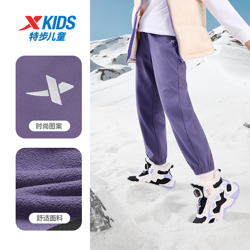 女童梭织运动裤 裤 儿童三防加绒裤 大童冬装 子2025秋冬新款 特步童装