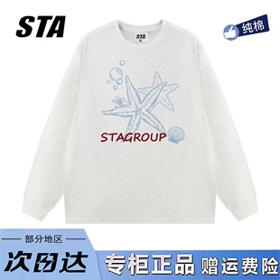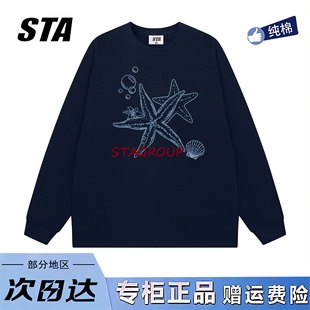重磅纯棉宽松黑色卫衣 男女秋季 STA旗舰店美式 潮牌小众设计感长袖