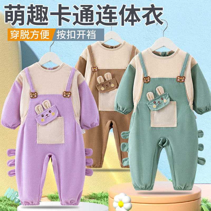 宝宝灯芯绒耐磨爬爬服婴幼儿宝宝外穿连体衣小童冬长袖 套棉衣围裙
