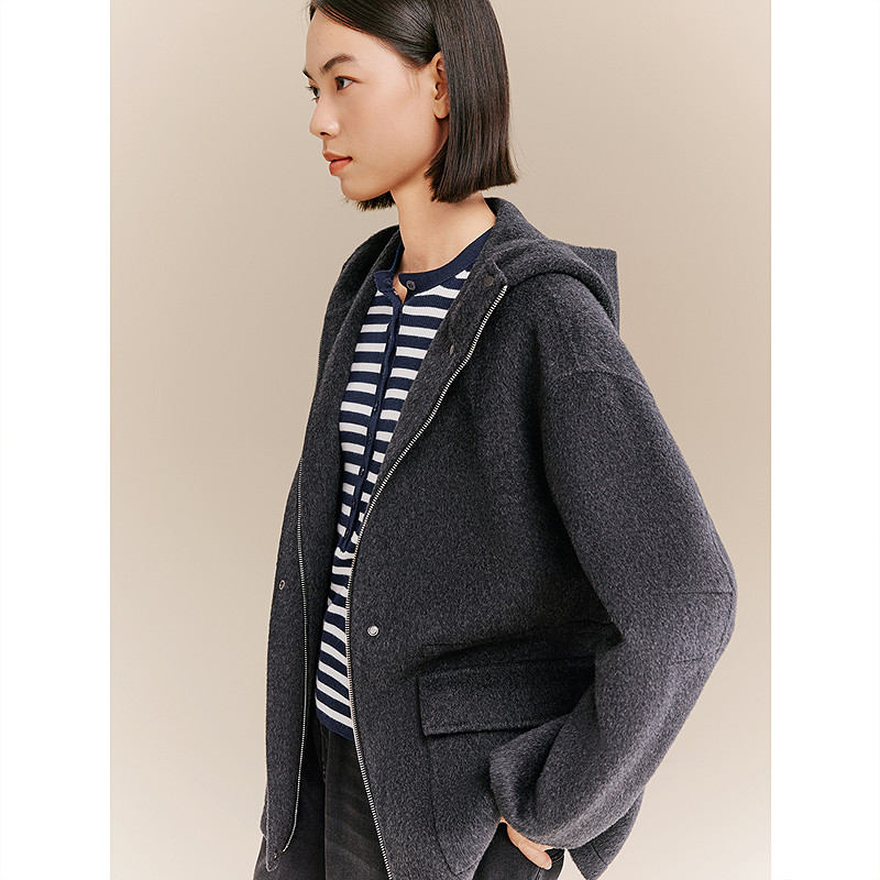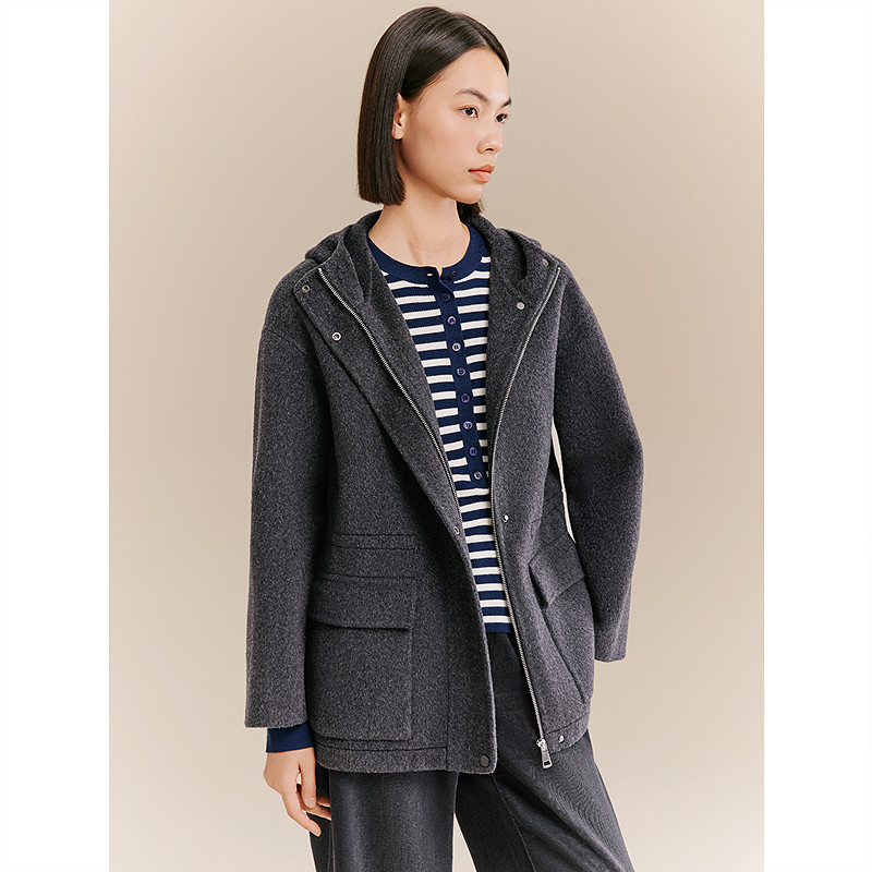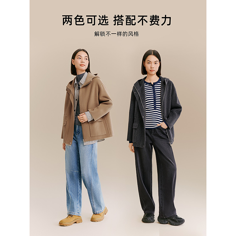 十二篮冬季 羊毛复古轻通勤毛呢外套女休闲百搭一手长连帽大衣