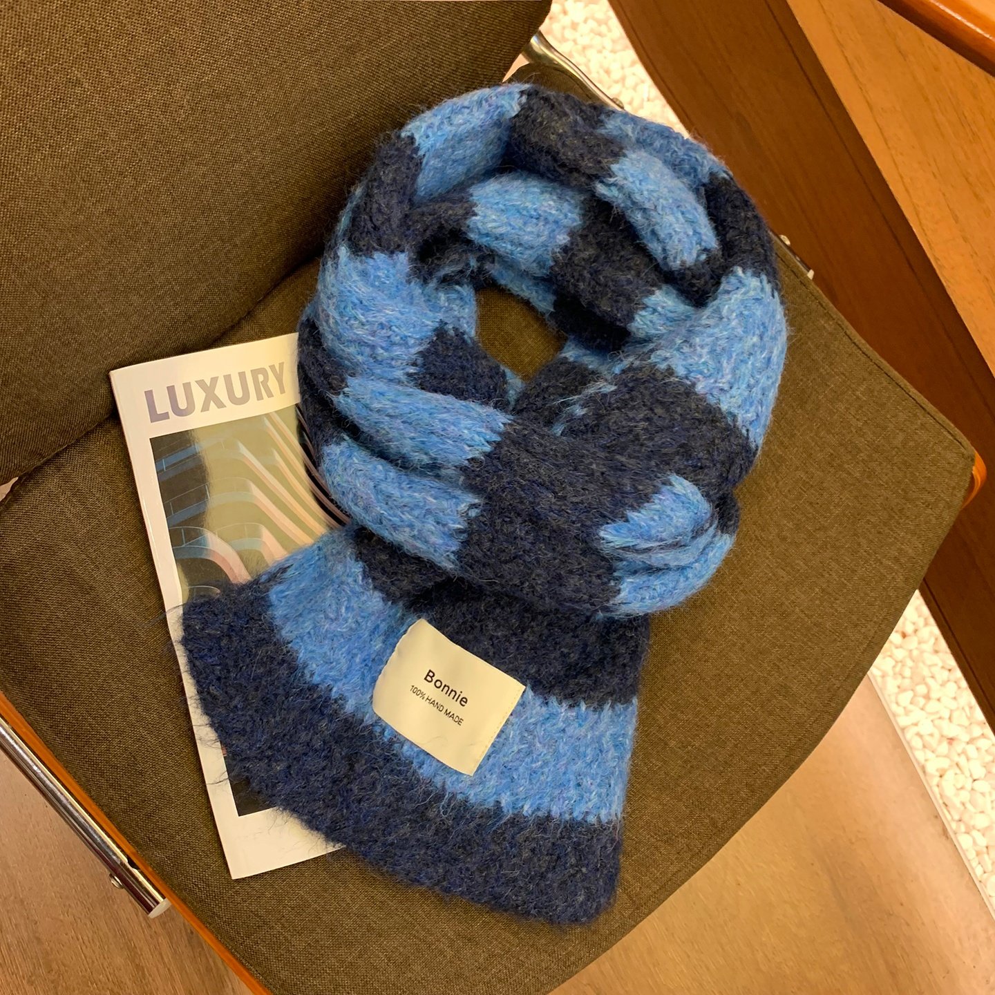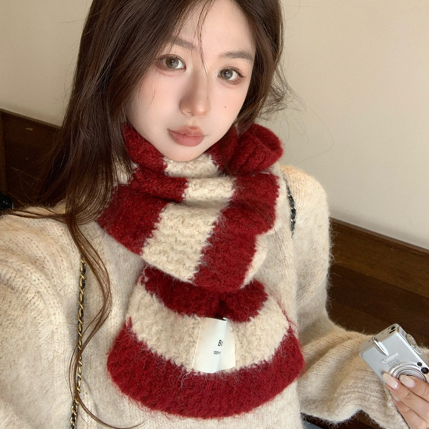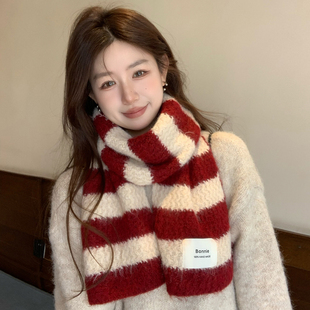 韩系ins风条纹针织围巾女秋冬季 披肩 保暖护颈围脖百搭学生情侣款