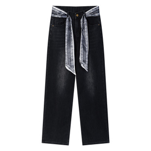 胖mm梨形身材宽松显瘦弹力九分裤 宛宛大码 黑色直筒牛仔裤 新款 秋季