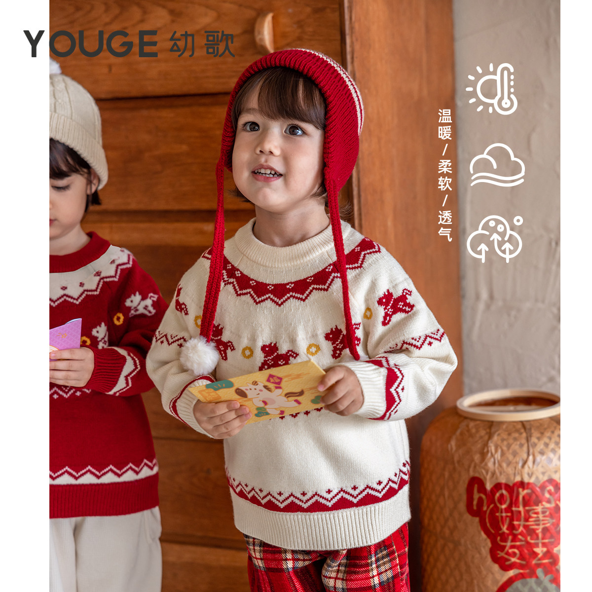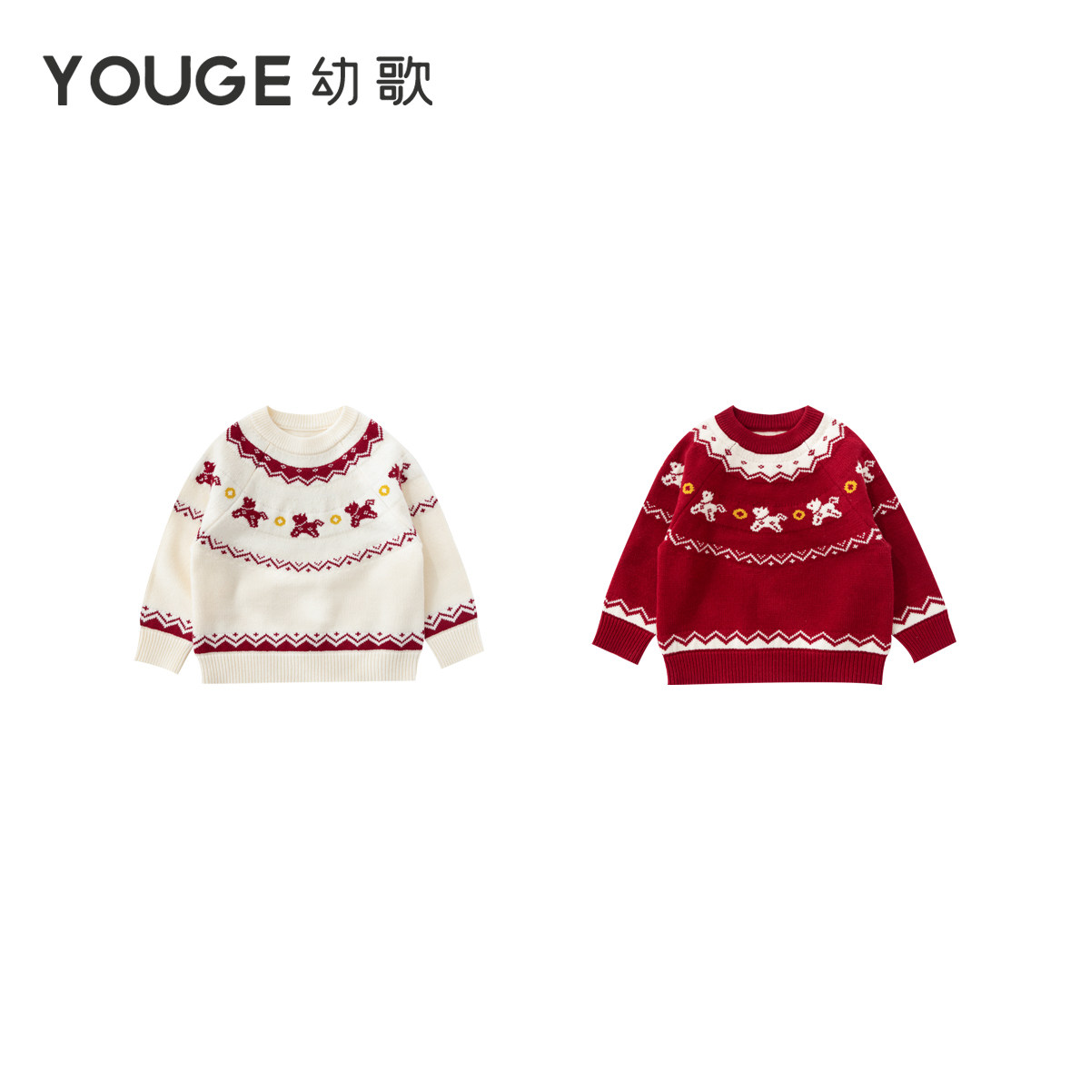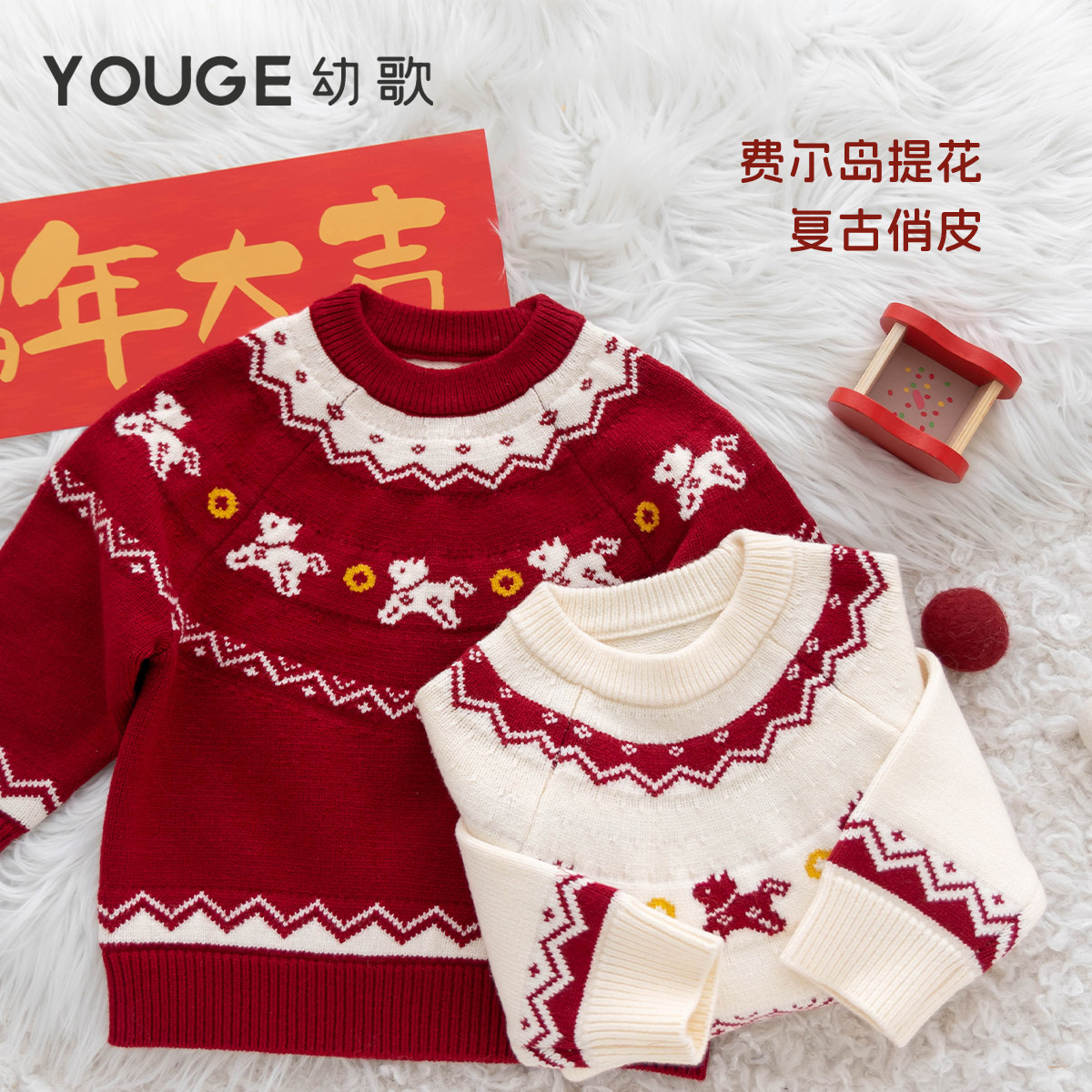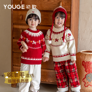 费尔岛提花羊毛混纺新年毛衣保暖复古潮 新款 YOUGE幼歌 婴幼儿冬季