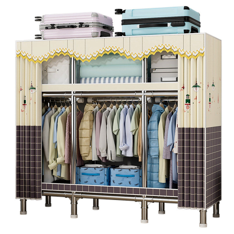 简易衣柜家用卧室出租房用布衣柜全钢架钢管加厚加粗加固收纳衣橱