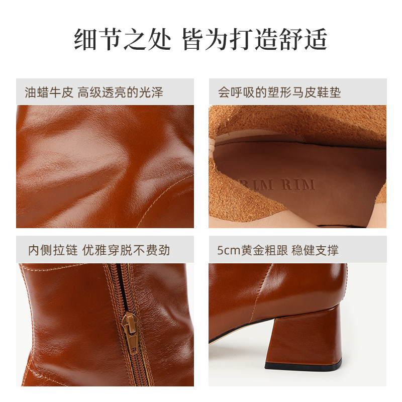 靴F3051DD5 通勤方头复古短靴粗跟女时装 百思图2025冬季 商场新款