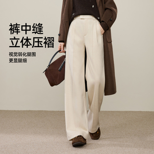 浅色糯米休闲裤 子 女秋冬加绒胖妹妹mm高腰宽松显瘦梨型身材阔腿裤