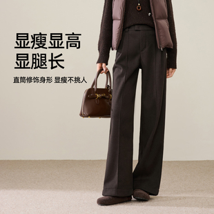 子潮 女秋冬加绒胖妹妹mm设计感高腰宽松显瘦休闲阔腿裤 黑色西装 裤
