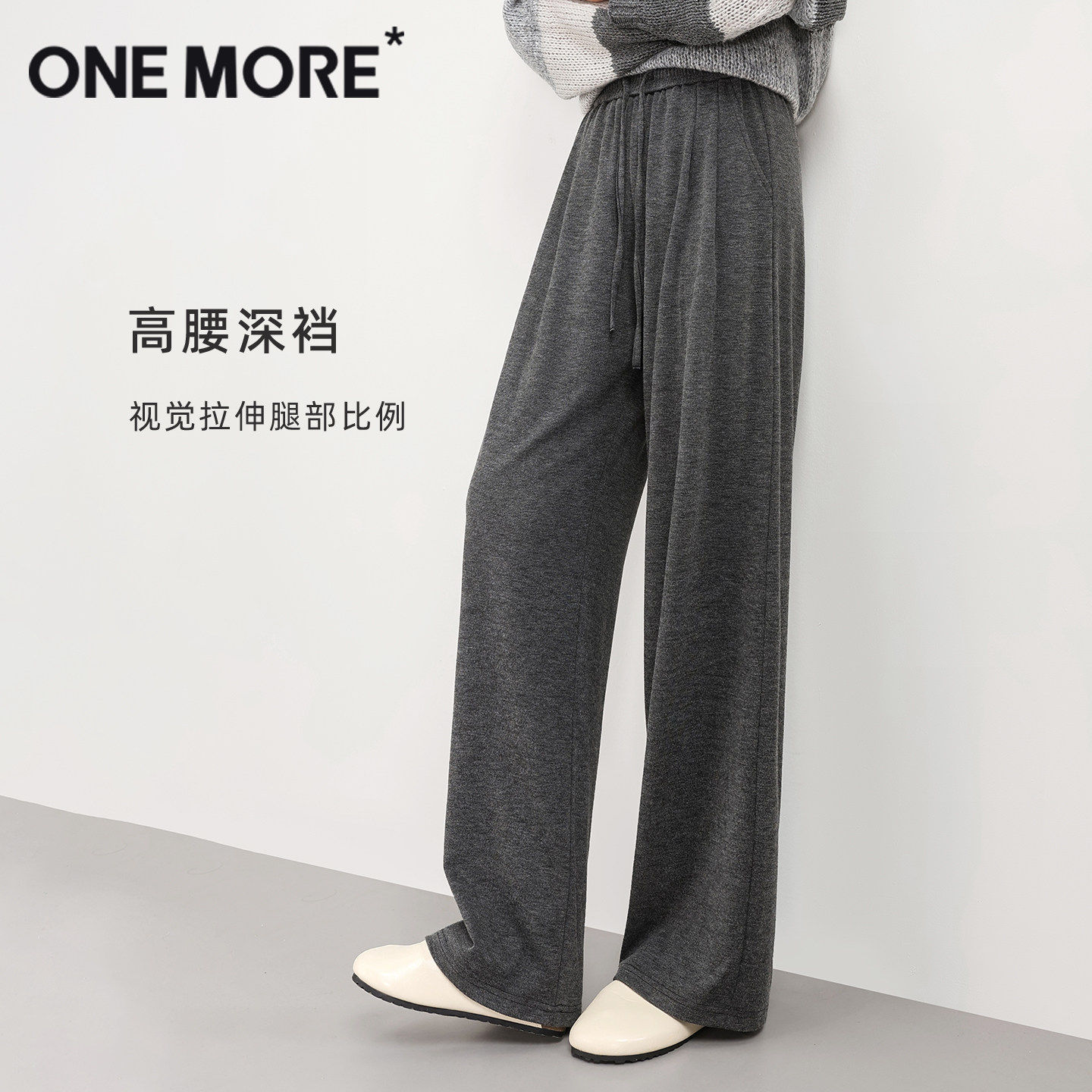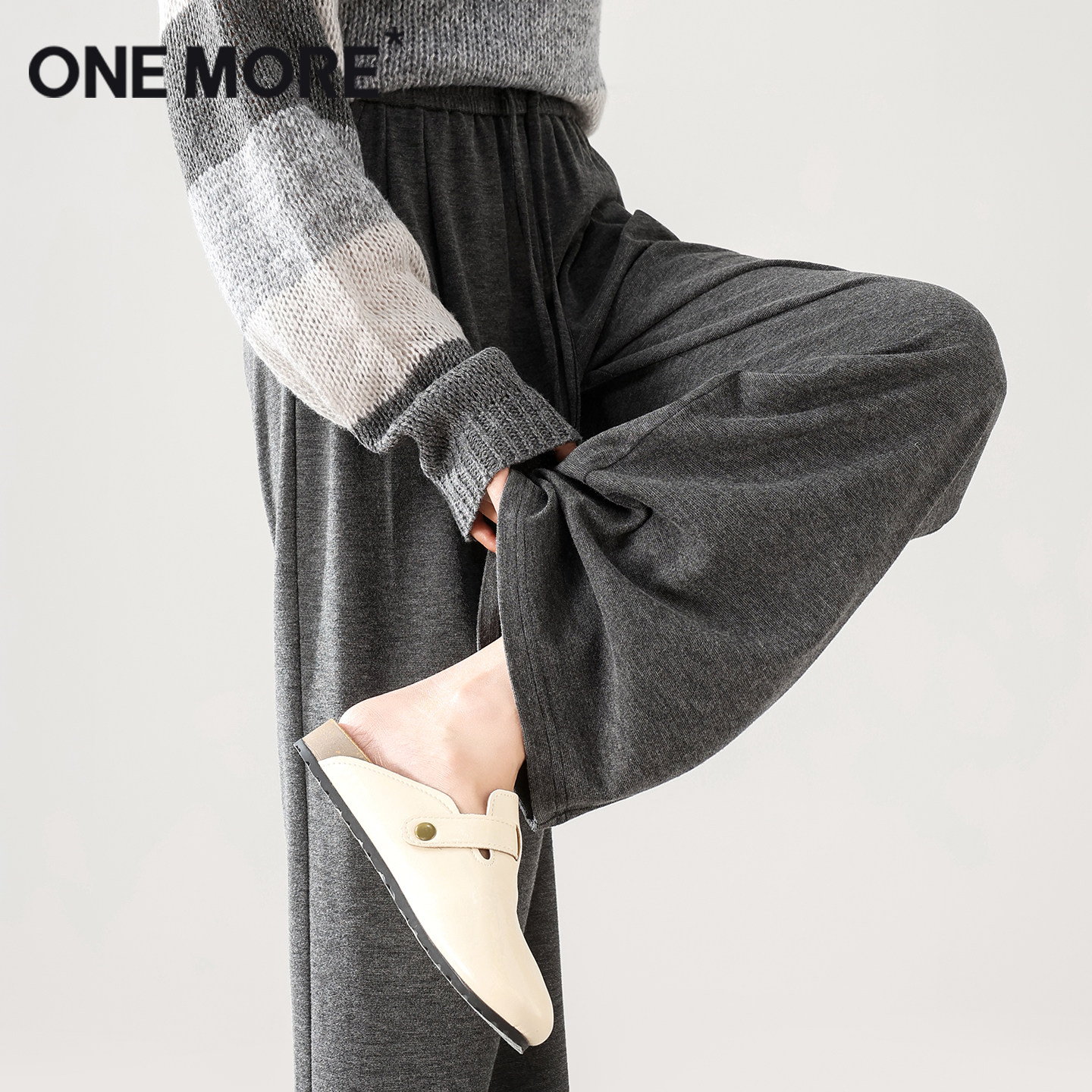 灰色加绒裤 one 秋冬加厚保暖休闲阔腿裤 女2025新款 子X more糯米裤