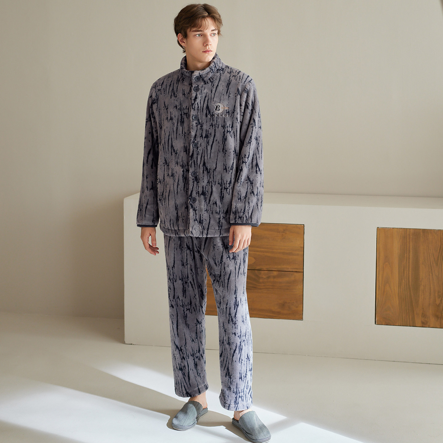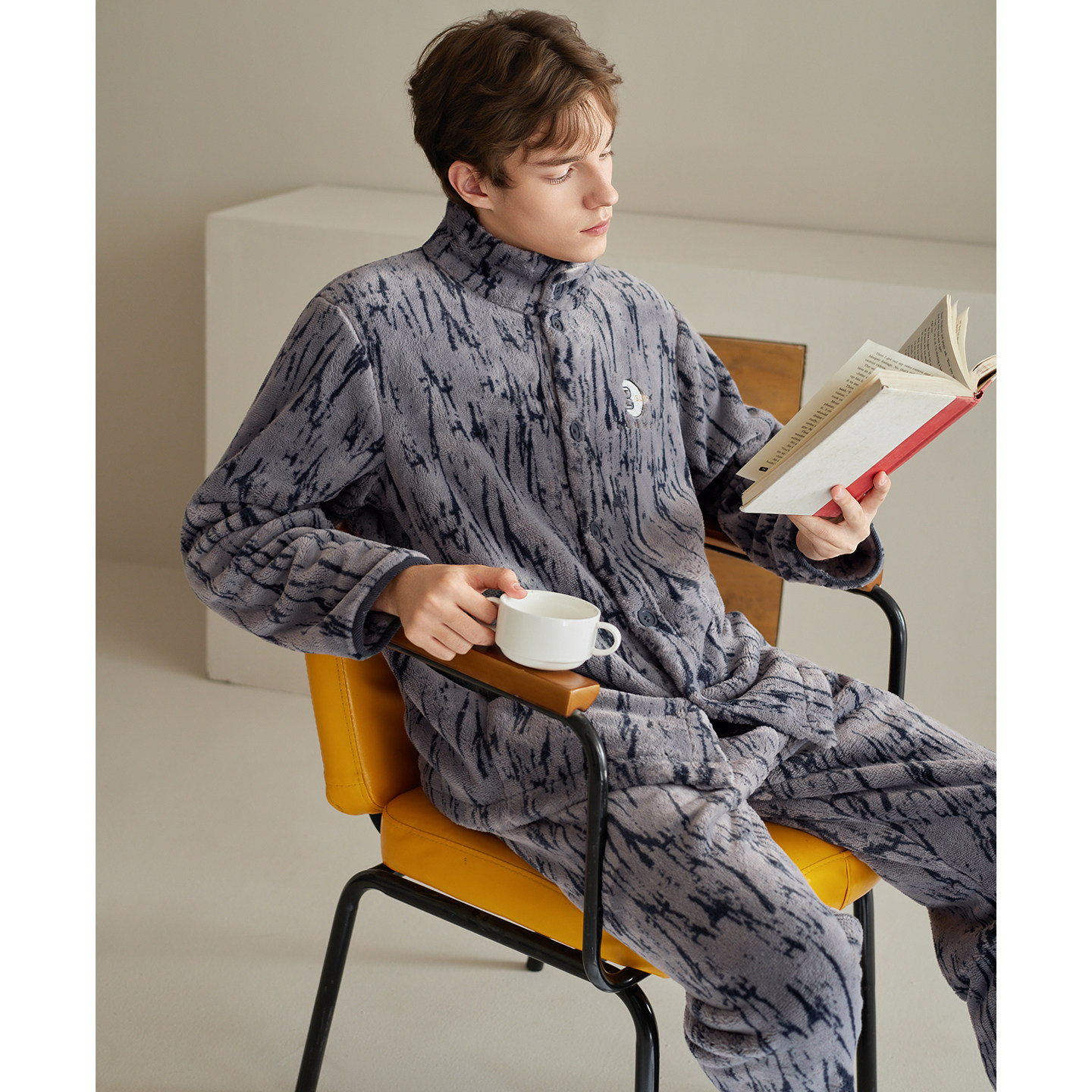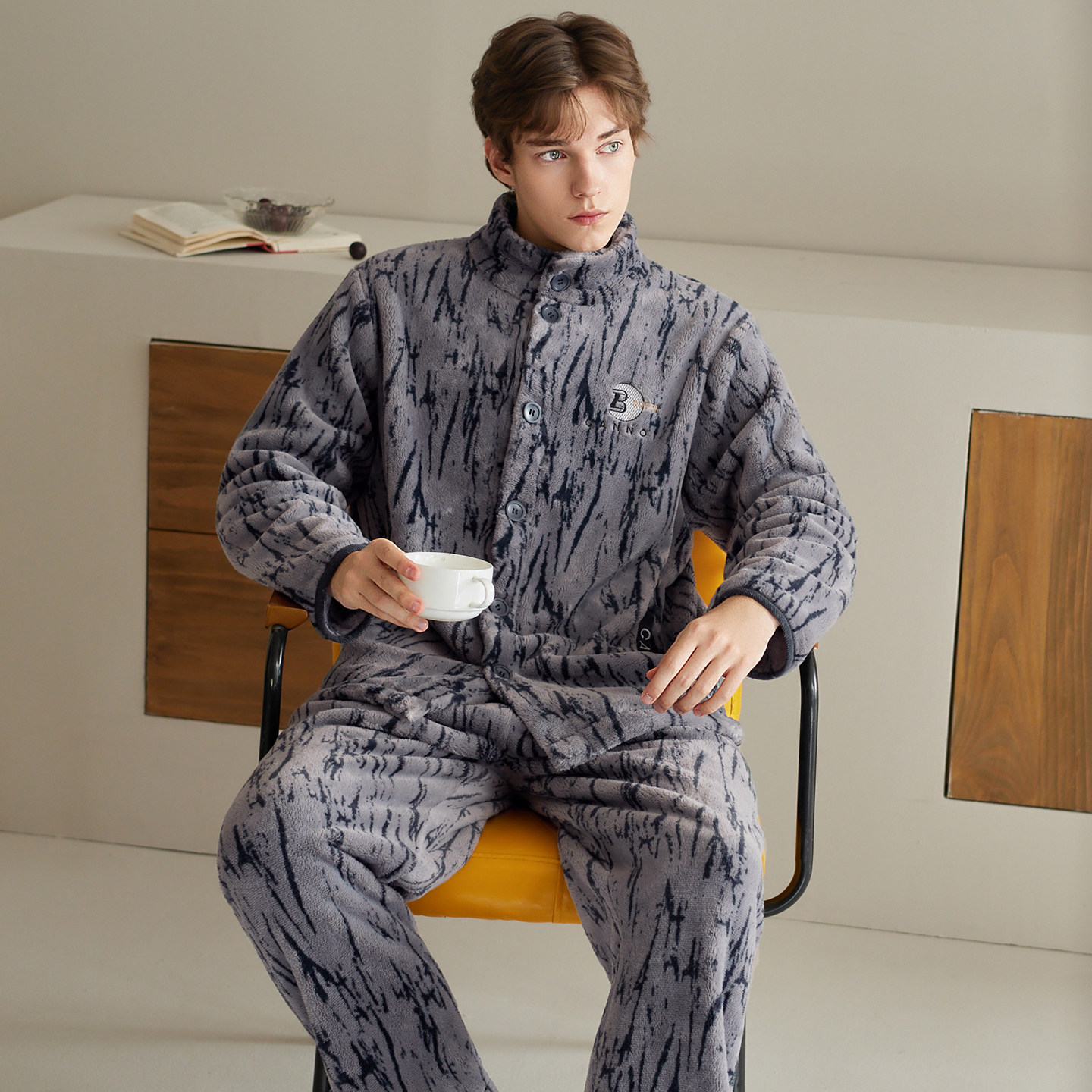 冬季 保暖睡衣男款 珊瑚绒家居服套装 男士 三层夹棉加绒加厚2025新款