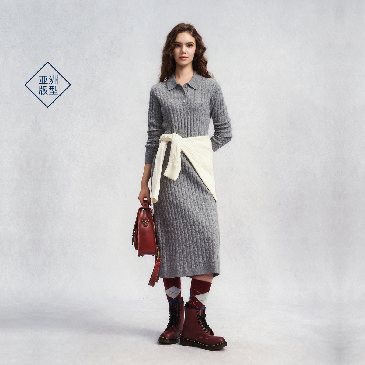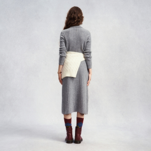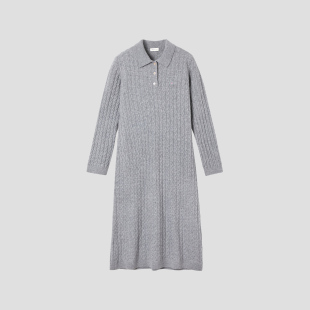 新款 甘特秋冬季 GANT 女士中长裙翻领绞花针织连衣裙 100%羊毛