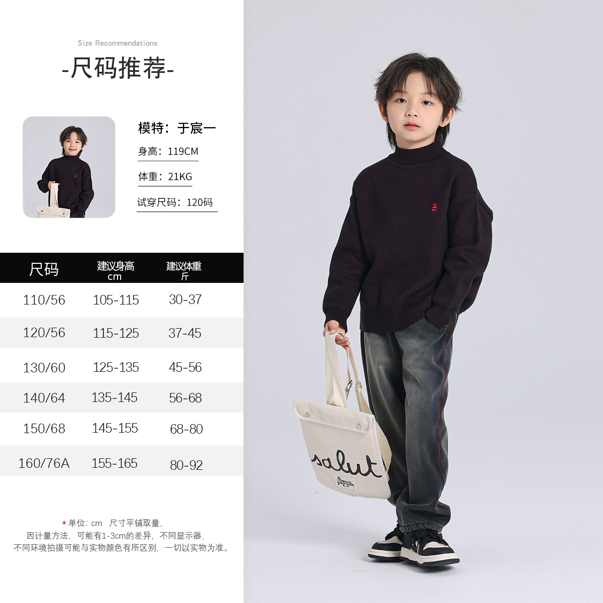 儿童内搭保暖中高领毛衣 新款 布丁哈鲁冬装 男童打底上衣2024秋冬季