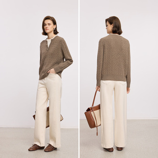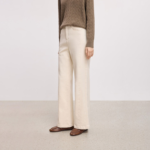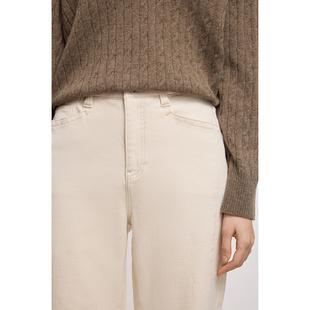 长裤 LILY2025冬新款 牛仔裤 简约宽松休闲通勤抓毛米白色直筒裤 女装