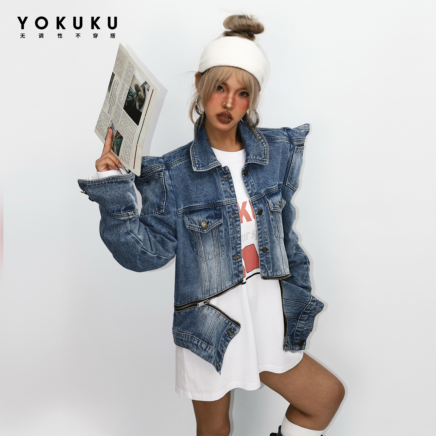 重工牛仔外套女直角肩拉链外套女 小众设计款 哟酷酷 赤诚与勇敢