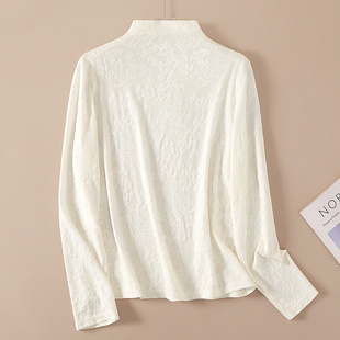 2025秋装 气质肌理感长袖 新款 时尚 正肩T恤 女装 她池半高领打底衫