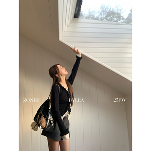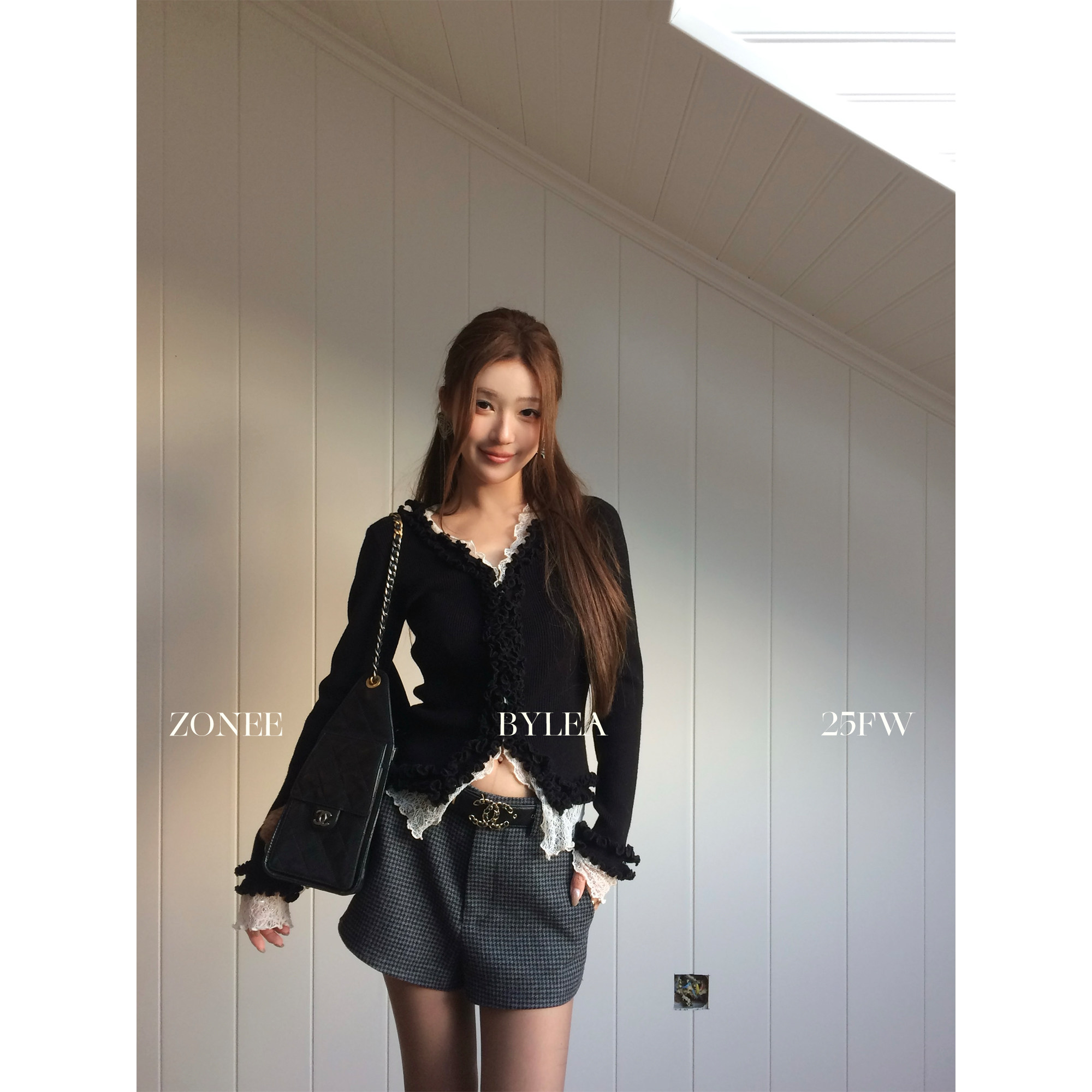 LEA宋亦雯 设计感蕾丝拼接针织开衫 瑞秋 法式 外套女 衣橱 ZONEE