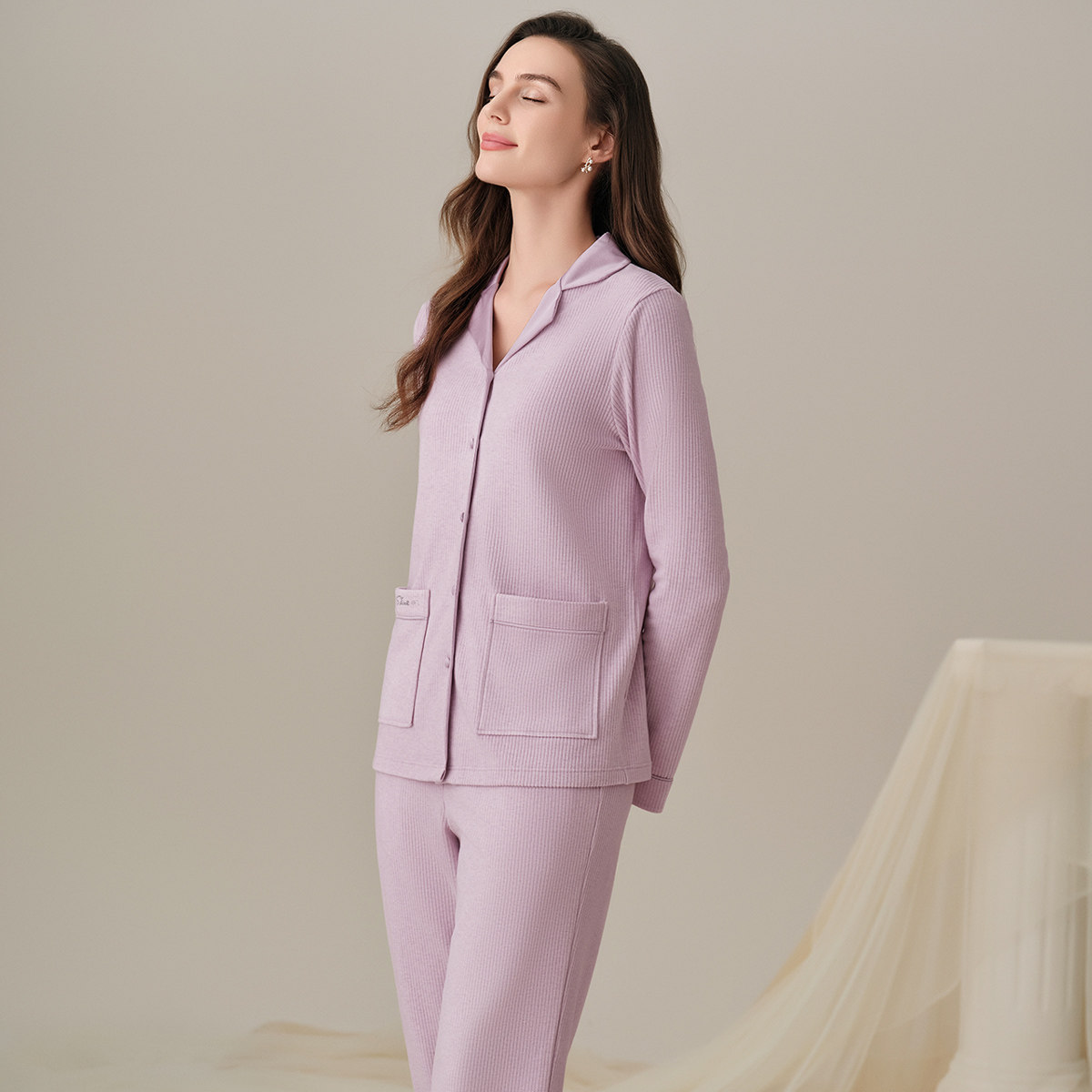 简约翻领女士舒适宽松莫代尔家居服套装 安莉芳新款 轻奢风