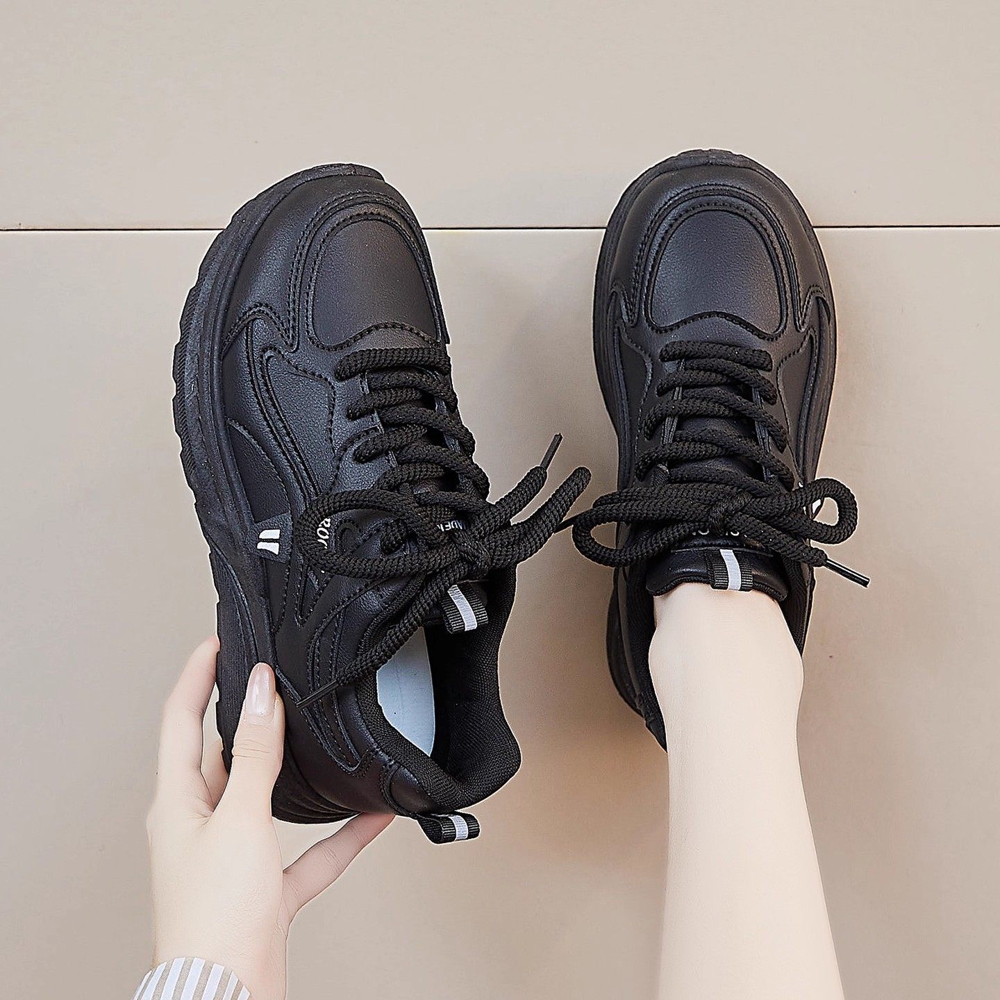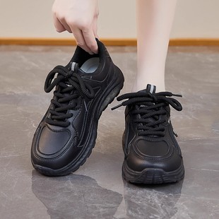 老爹鞋 软底防滑工作鞋 轻便防水厨房上班鞋 皮面秋黑色运动鞋 子 女鞋